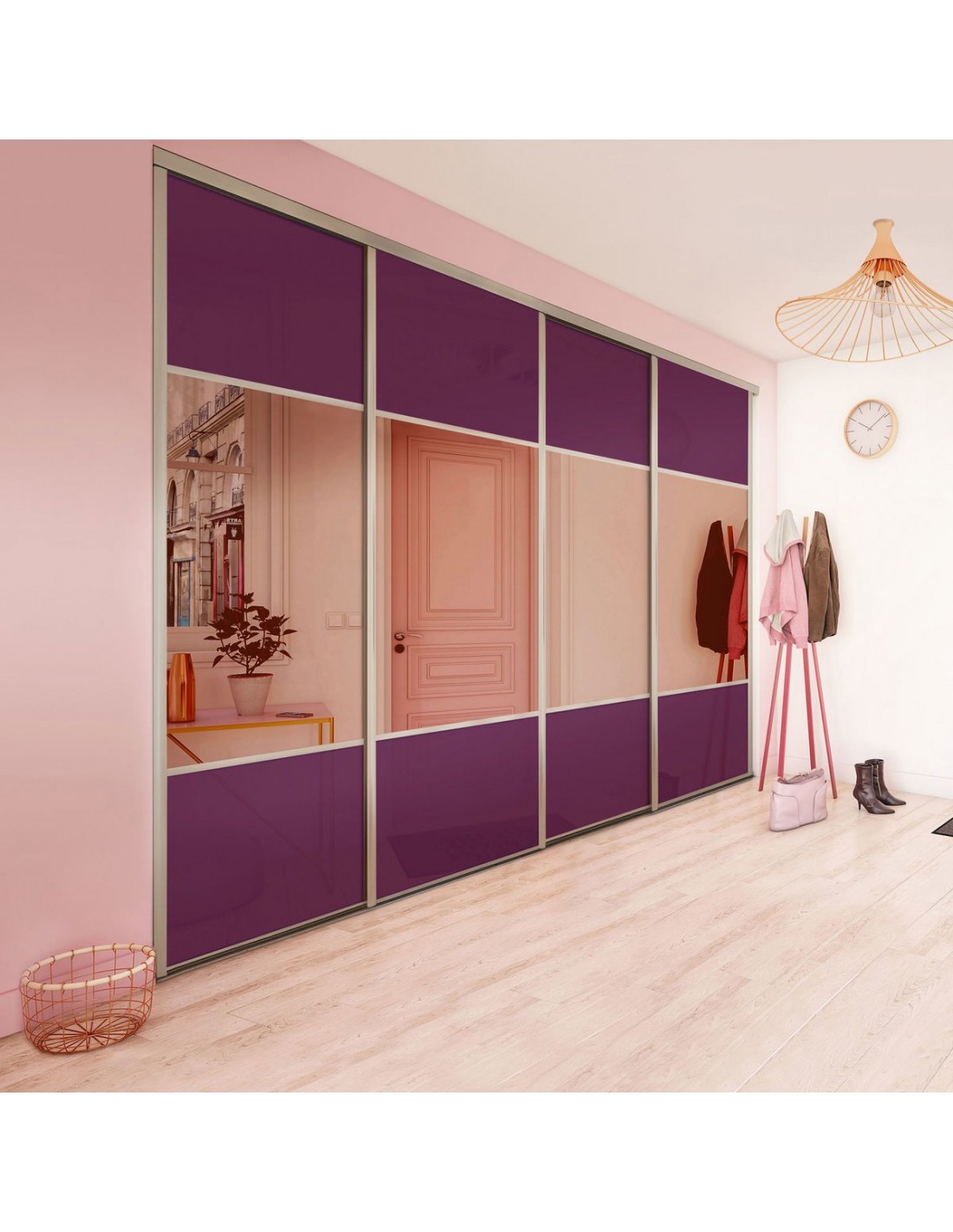 Carrie : Façade de placard coulissante 4 portes verre laqué et miroir bronze