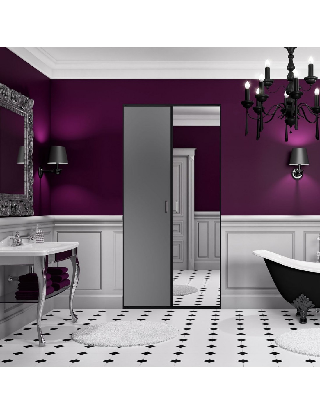 So glam : Façade de placard pivotante 2 portes uni mat et miroir argent