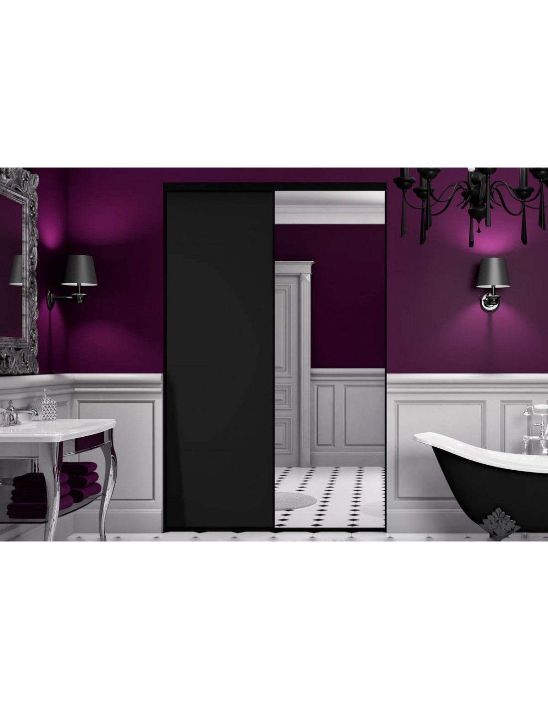 So glam : Façade de placard coulissante 2 portes uni mat et miroir argent
