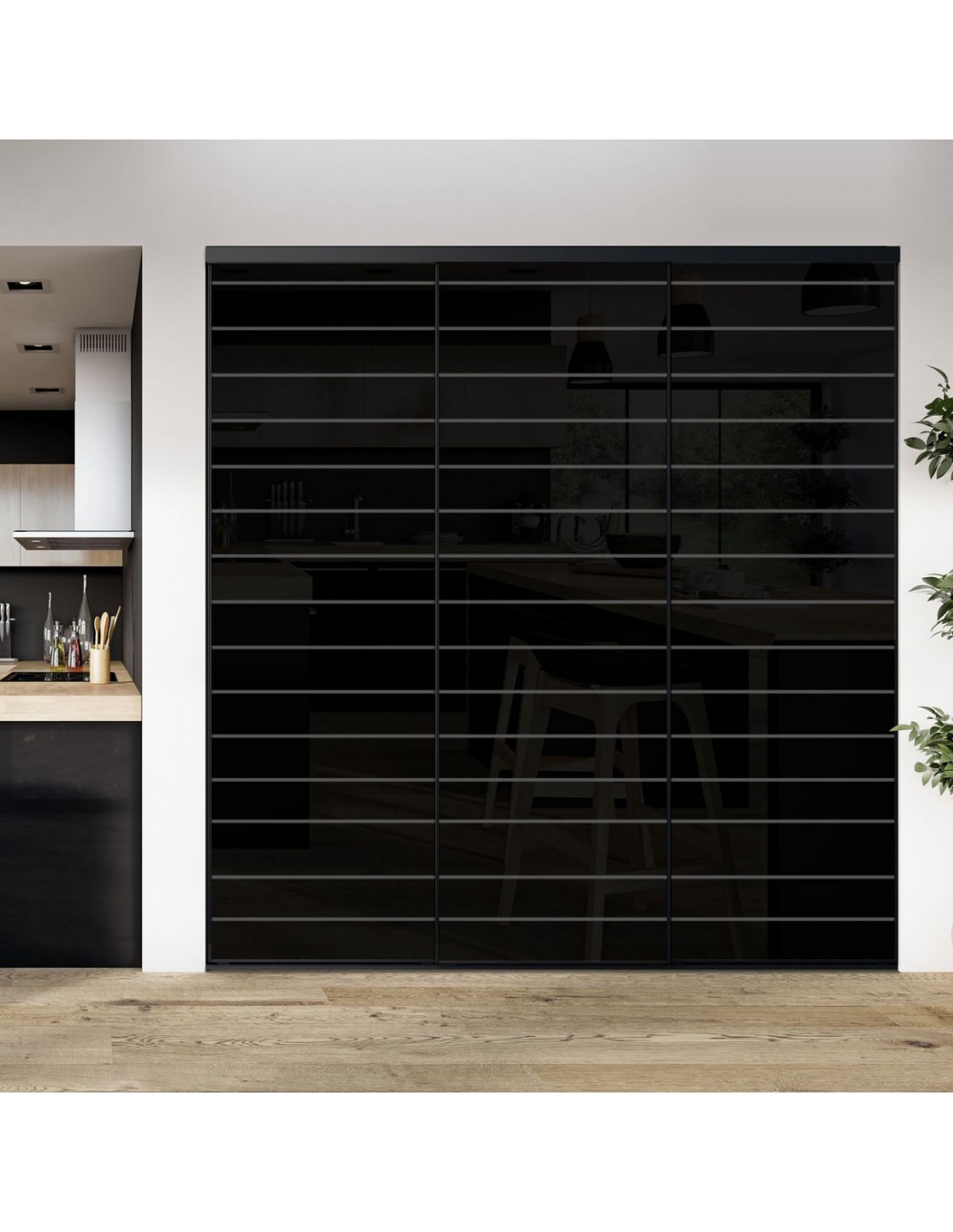 Générique : Façade de placard coulissante 3 portes verre laqué rainuré