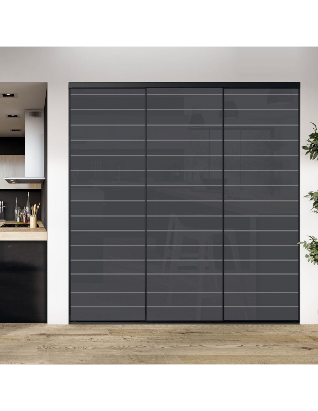 Générique : Façade de placard coulissante 3 portes verre laqué rainuré