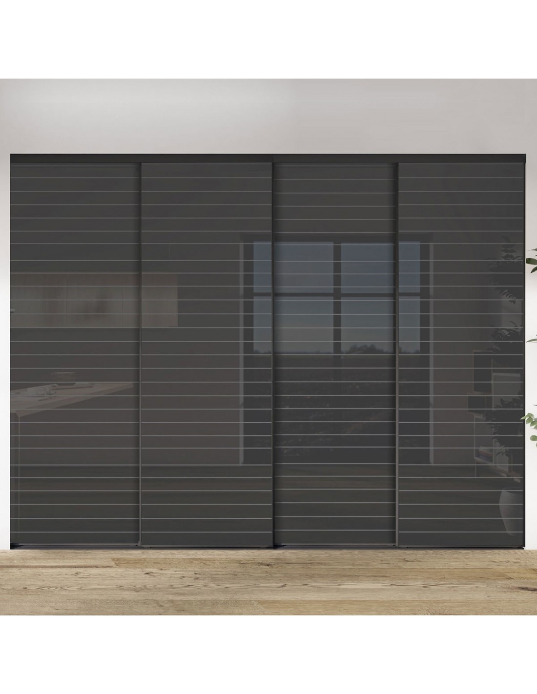 Générique : Façade de placard coulissante 4 portes verre laqué rainuré