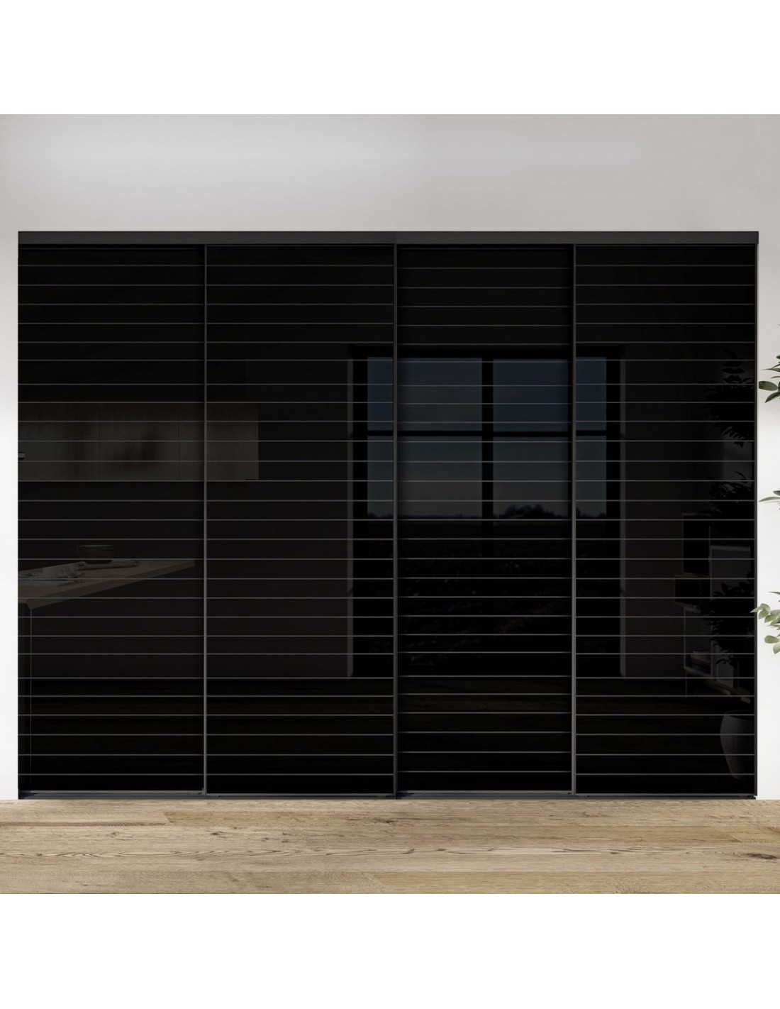Générique : Façade de placard coulissante 4 portes verre laqué rainuré