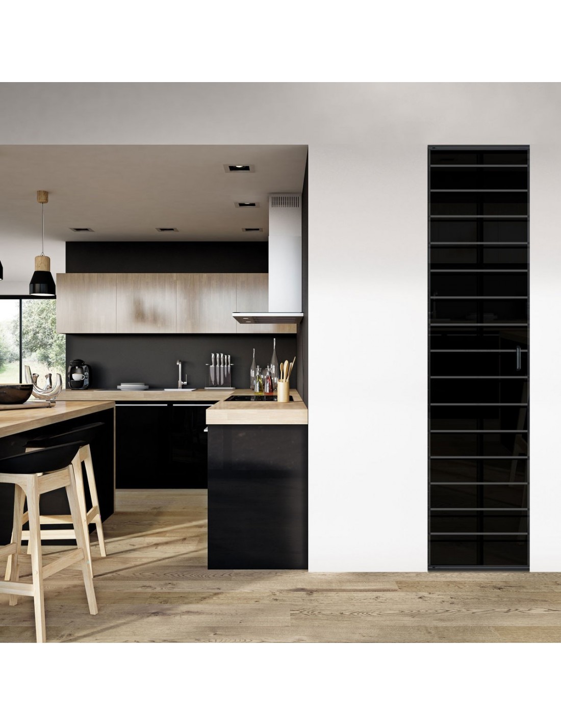 Les façades de placard générique sont particulièrement élégantes, de par leur composition en verre mixée à des rainures polies.