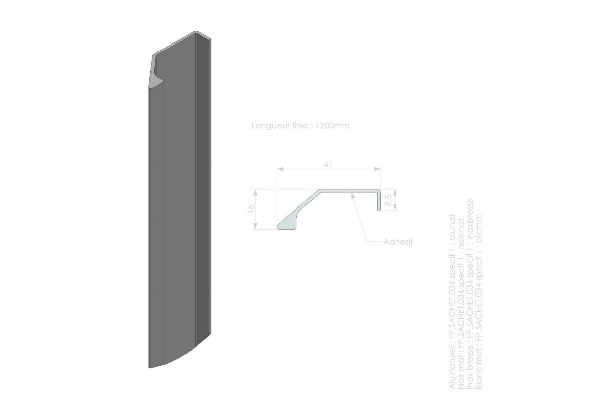 Surpoignée adhésive droite pour façades coulissantes