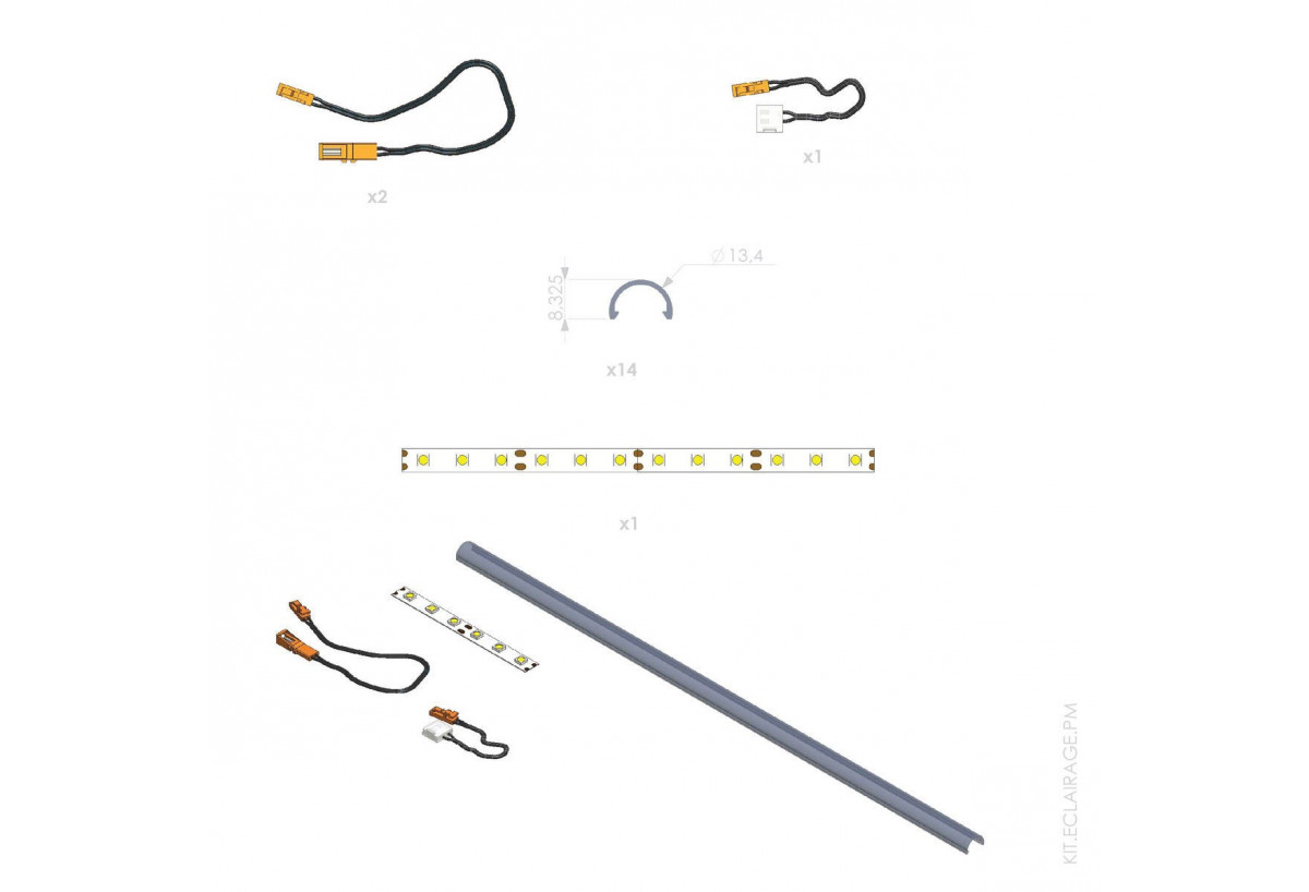 Nécessite de posséder un des 2 kits d'éclairage haut. Conçu pour se placer sur une plinthe murale aluminium Kazed.
