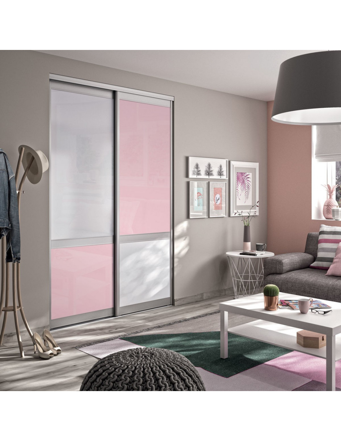 Façade de placard 2 portes coulissante Bubble Gum laqué - Kazed : Confort'Mat