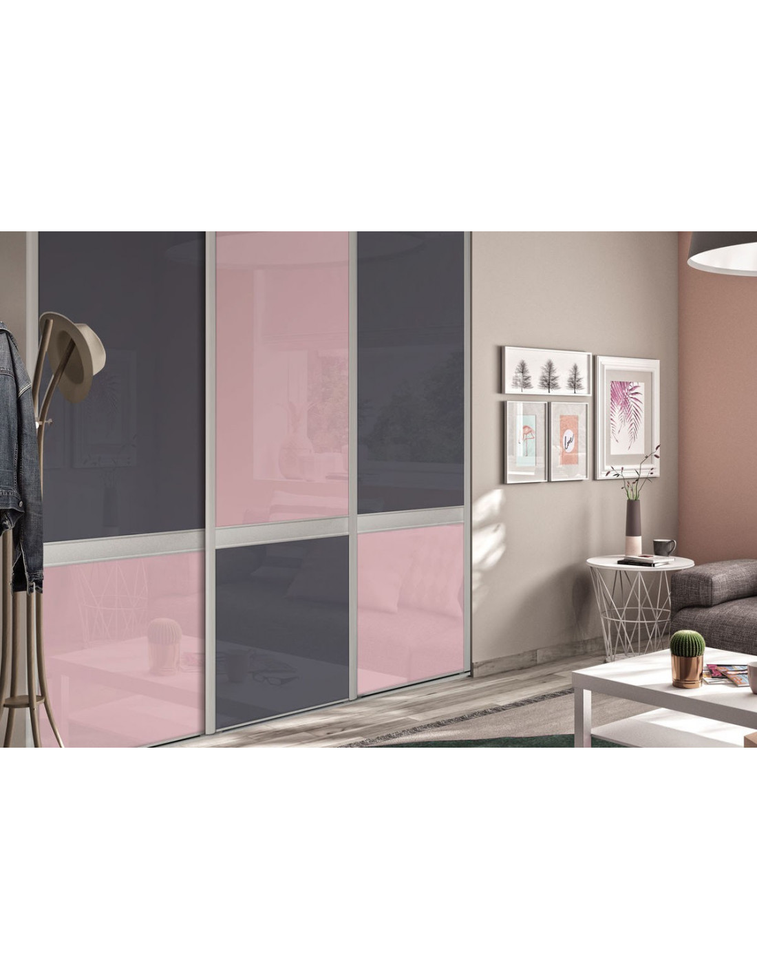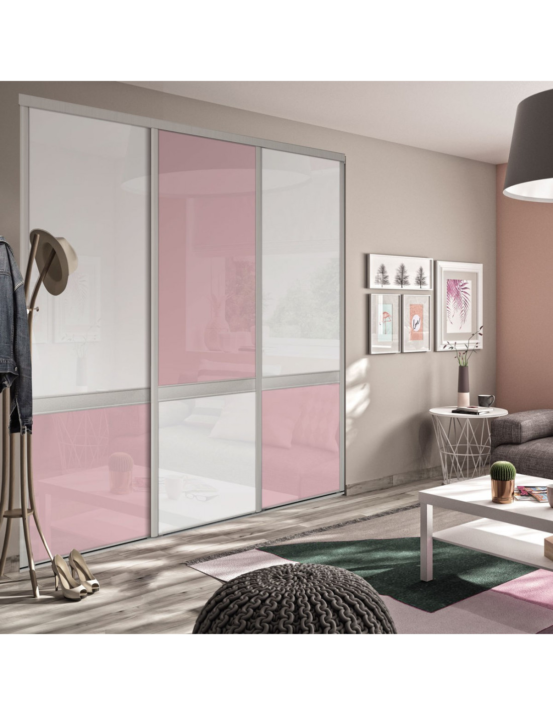 Bubble Gum : Façade de placard coulissante 3 portes verre laqué