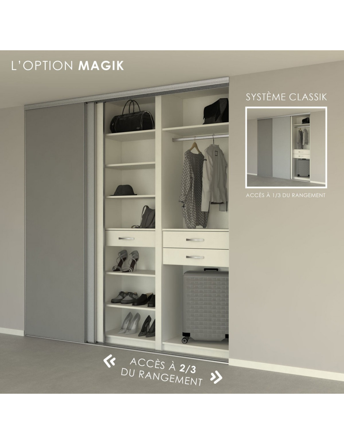 • Rail extra plat : Les mécanisme des portes vous permettent de régler rapidement et simplement la hauteur et l'aplomb.