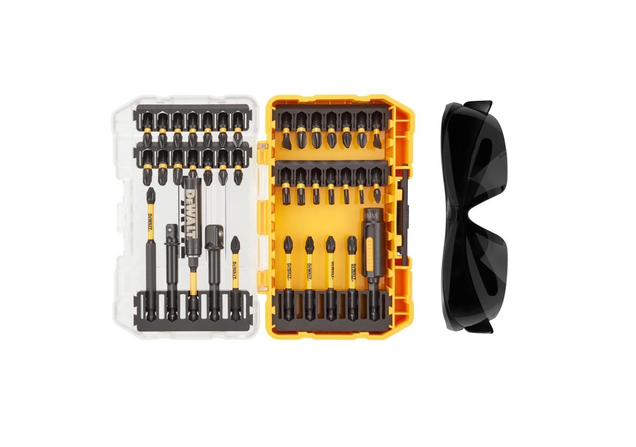 Embouts 25mm: Ph2 x3, Ph3 x2, Pz1 x1, Pz2 x11, Pz3 x3, Pl6 x1, Pl6-8 x1, T10 x1, T15 x1, T20 x1, T25 x1, T30 x2 ͍ Embouts flextorq 57mm: Ph2 x1, Pz2 x3, Pz3 x1͍ Embouts flextorq 89mm: Pz2 x1 ͍ Adaptateur hex 1/4 à 1/4 et 1/4 à 3/8͍ Porte-embouts nettoyable 8mm͍ Lunettes de sécurité teintées