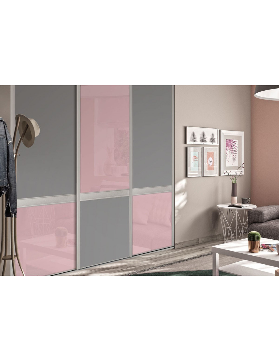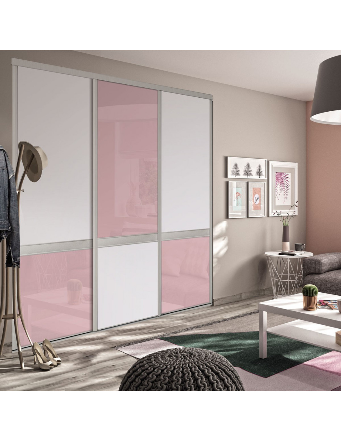 Bubble Gum : Façade de placard coulissante 3 portes verre laqué et uni mat