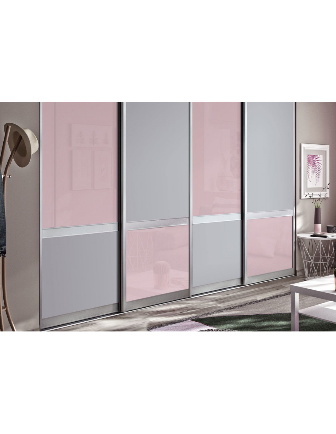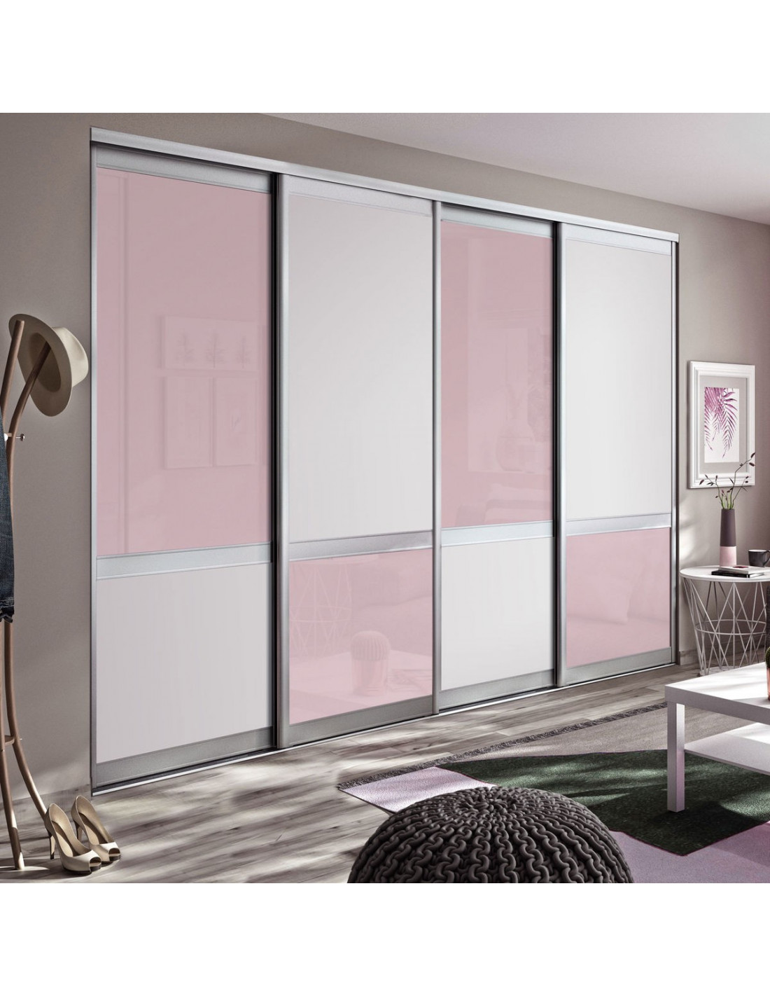 Bubble Gum : Façade de placard coulissante 4 portes verre laqué et uni mat
