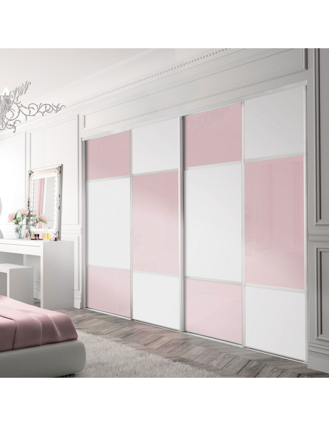 Candy : Façade de placard coulissante 4 portes verre laqué et uni mat