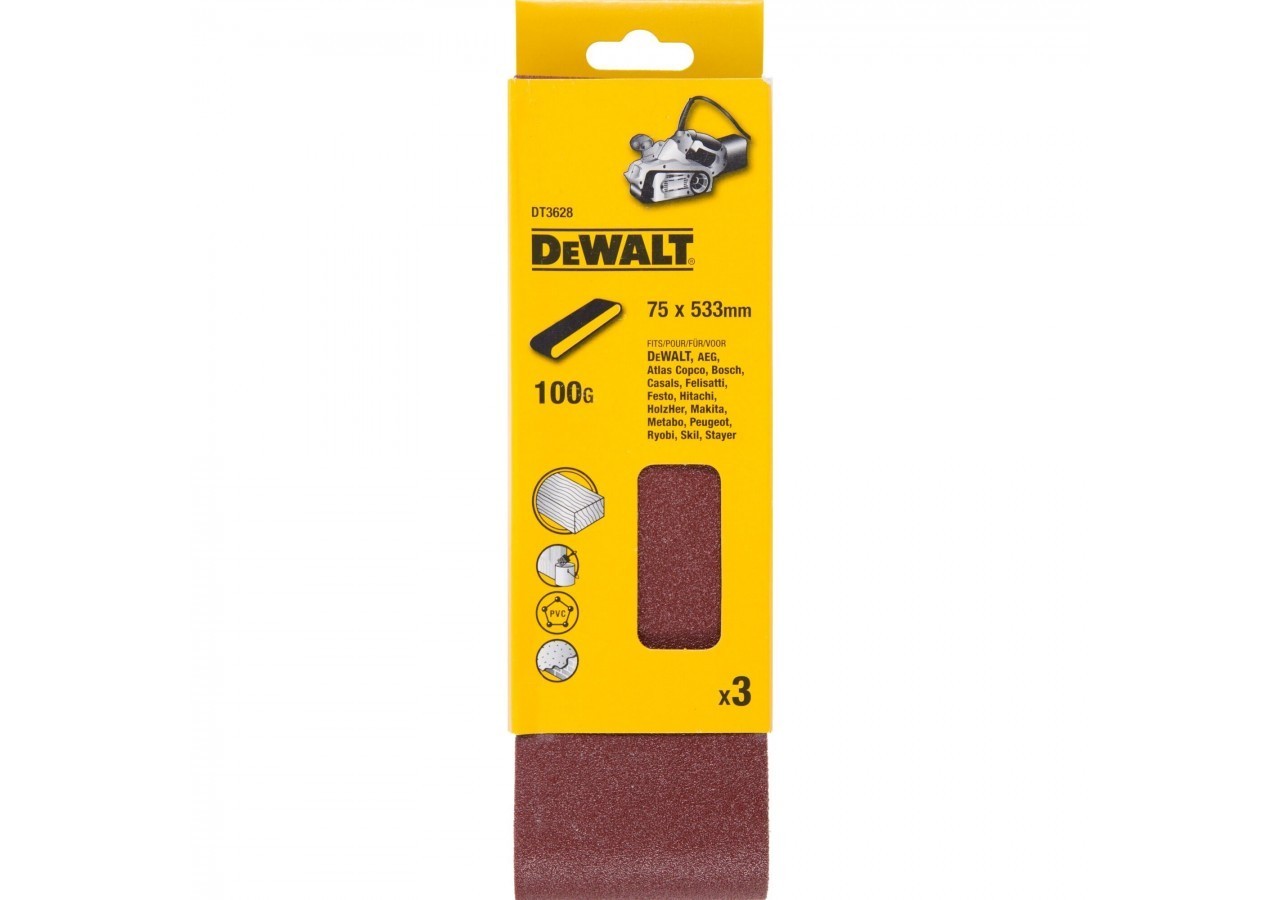 - Les bandes DEWALT EXTREME® (à partir de grain 120) bénéficient d'un collage à la résine antistatique, qui réduit l'encrassement et rend l'extraction de la poussière plus efficace, pour une durée de vie accrue