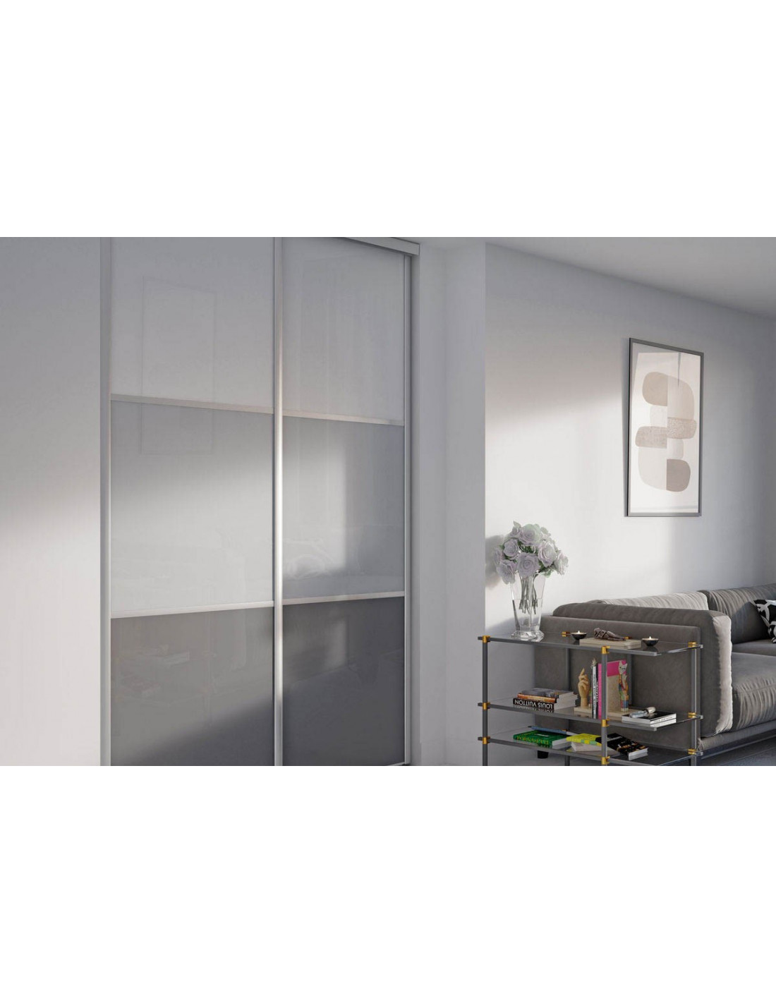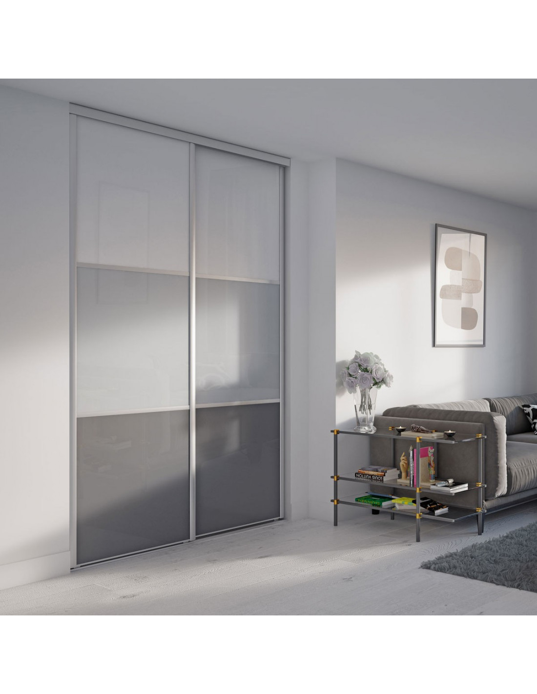 Alouette : Façade de placard coulissante 2 portes verre laqué