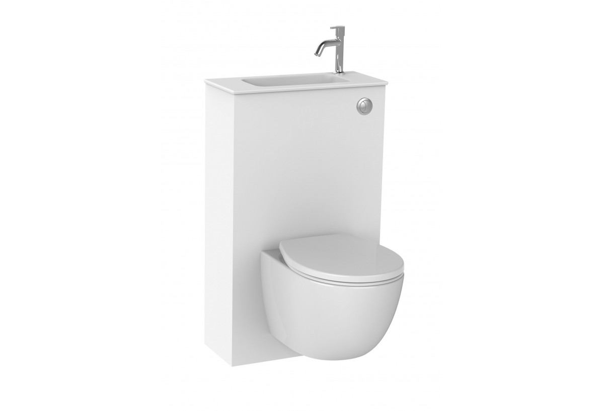 - Cuvette suspendue SENTO : avec circuit d’eau conçu spécialement pour une petite chasse de 2,5 litres et une grande chasse de 4 litres, 100% carénée