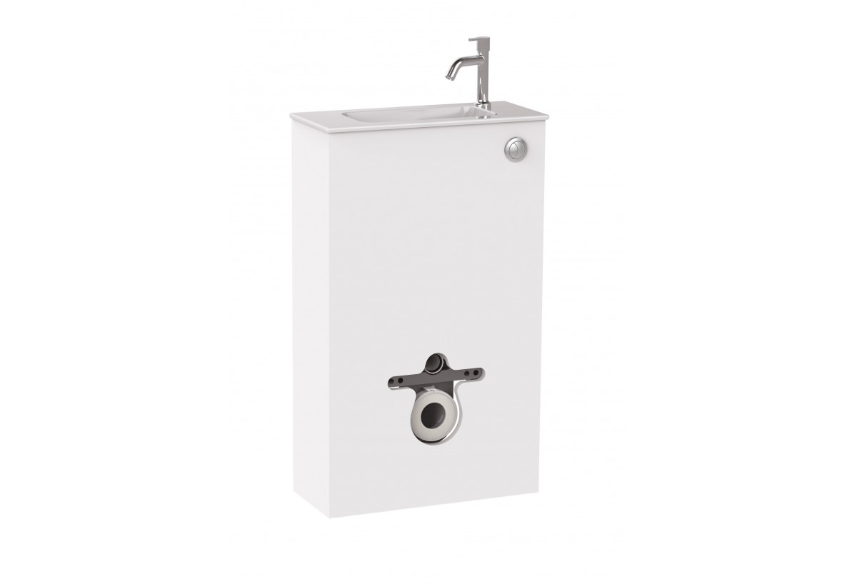 - Bâti-support BCS Verso 800 câble : fixation sur sol porteur, équipé d’un robinet flotteur économiseur d’eau et une chasse réglée à 2,5/4l avec bouton double volume chromé mat et brillant