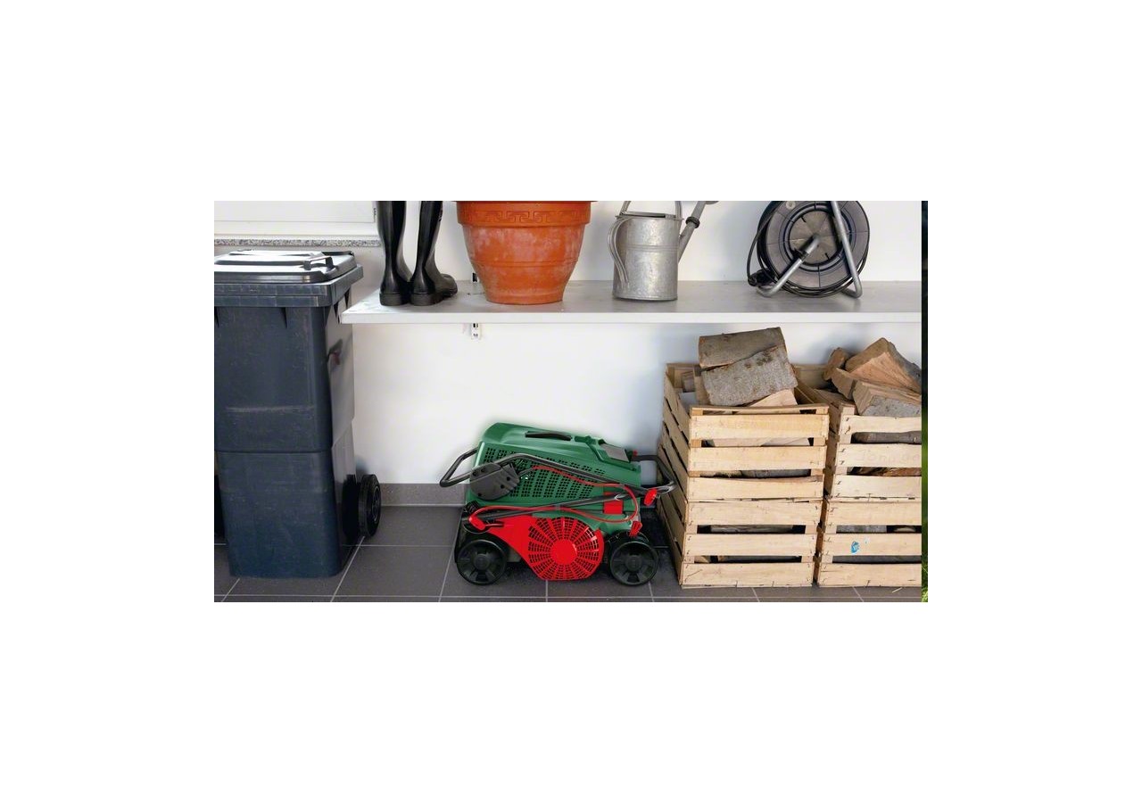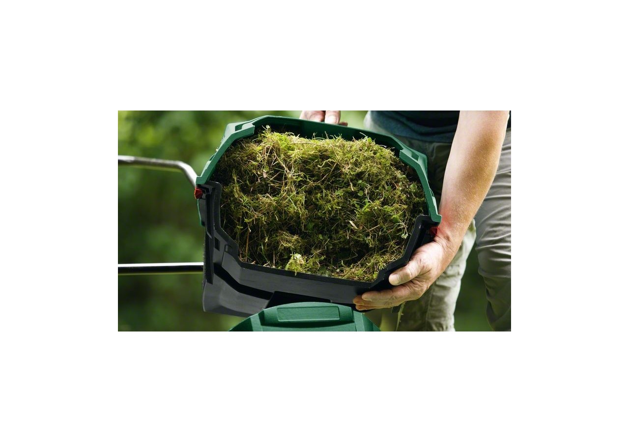 - Utilisation pratique : le grand bac de ramassage de 50 L permet de travailler longtemps sans avoir à vider le bac.