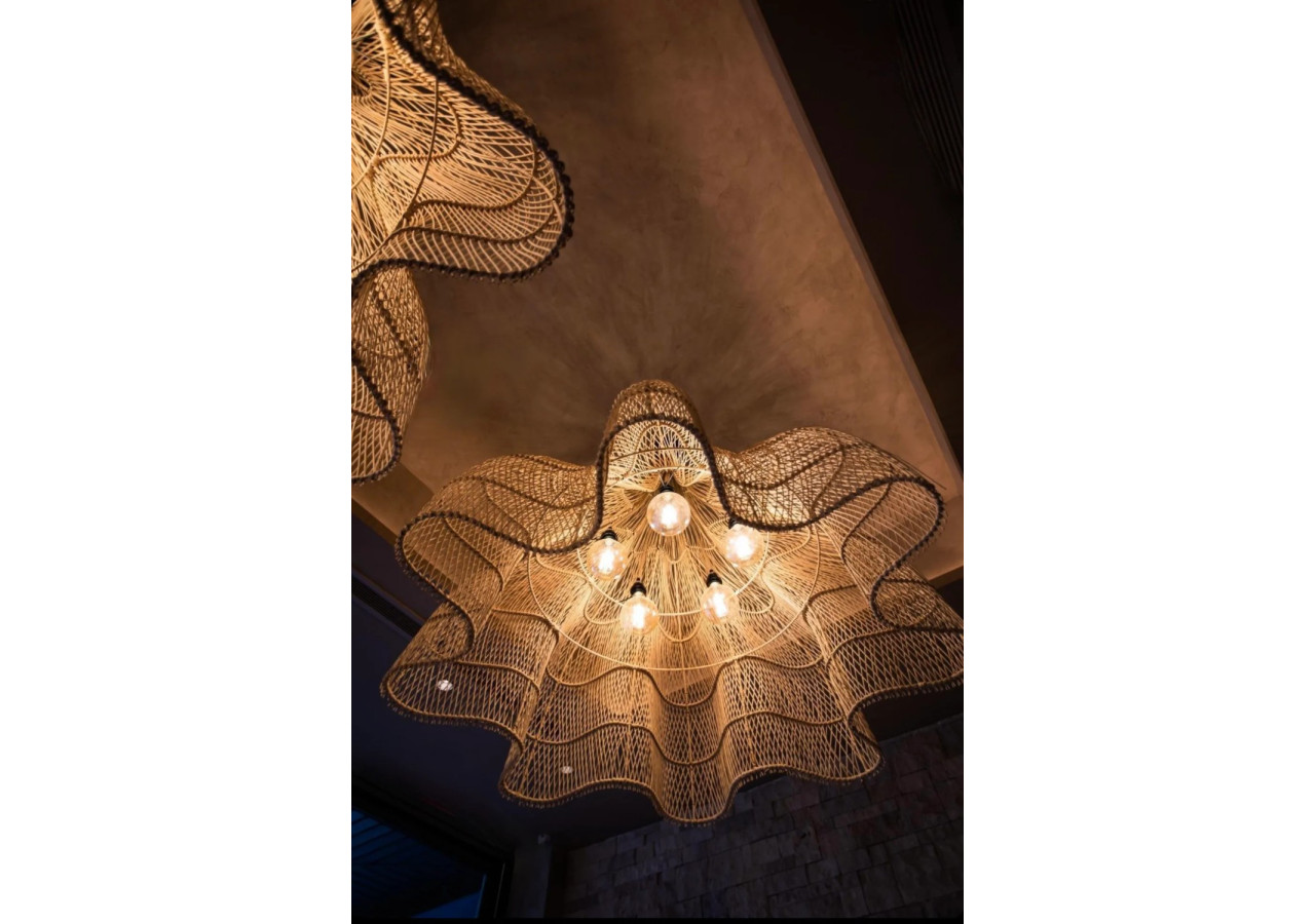 Transformez votre espace avec notre Suspension Whipped - Naturel - XXL, une lampe au design unique qui embellit chaque pièce, qu'elle soit intérieure ou extérieure couverte, en un espace boho chic.