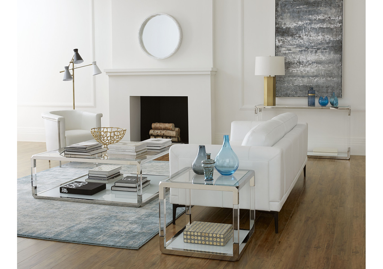 Inspirée par le glamour du design classique et moderne, la collection Jasper offre une surface d'exposition saisissante. Son plateau en verre ultra-clair est encadré d'acier inoxydable poli et d'acrylique pour un look aéré et flottant qui ne manquera pas d'impressionner vos invités. Sa tablette inférieure est fabriquée à partir de verre blanc laiteux pour un contraste astucieux.